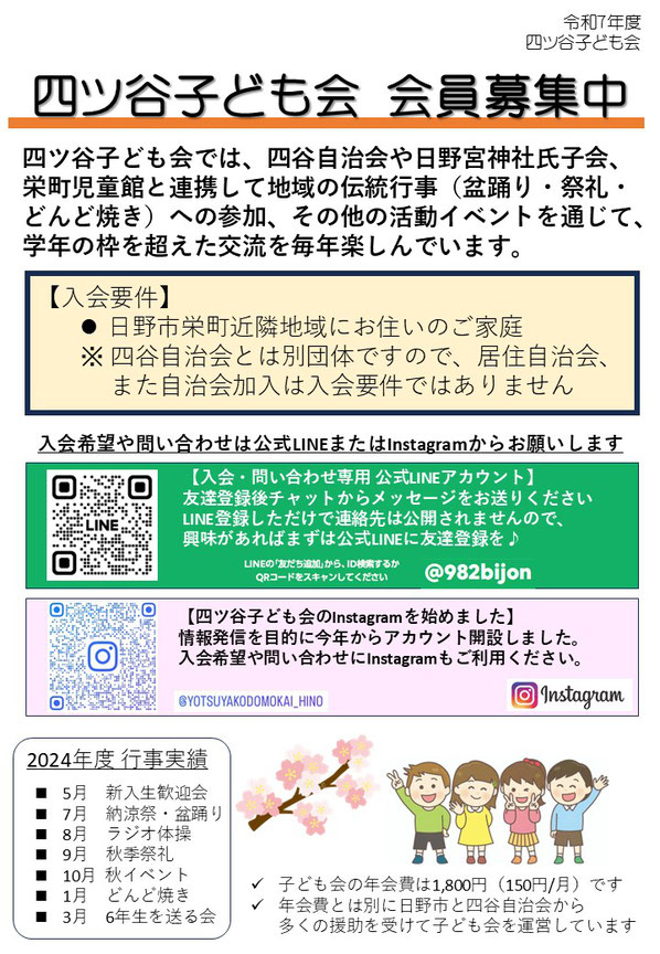四ツ谷子ども会への問い合わせは公式LINEからお願いします。